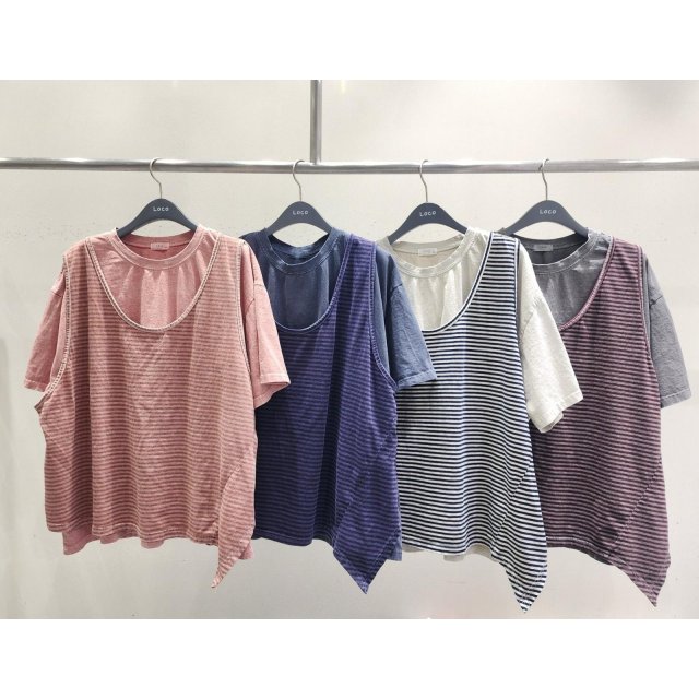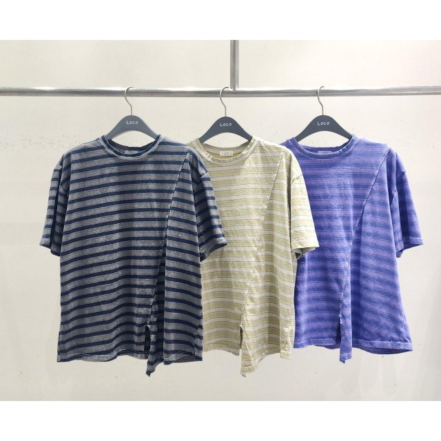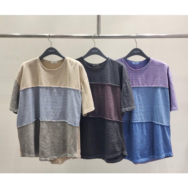 LOCO 新款🍄洗水拼色橫間Cotton Tee L2 W44”L25”