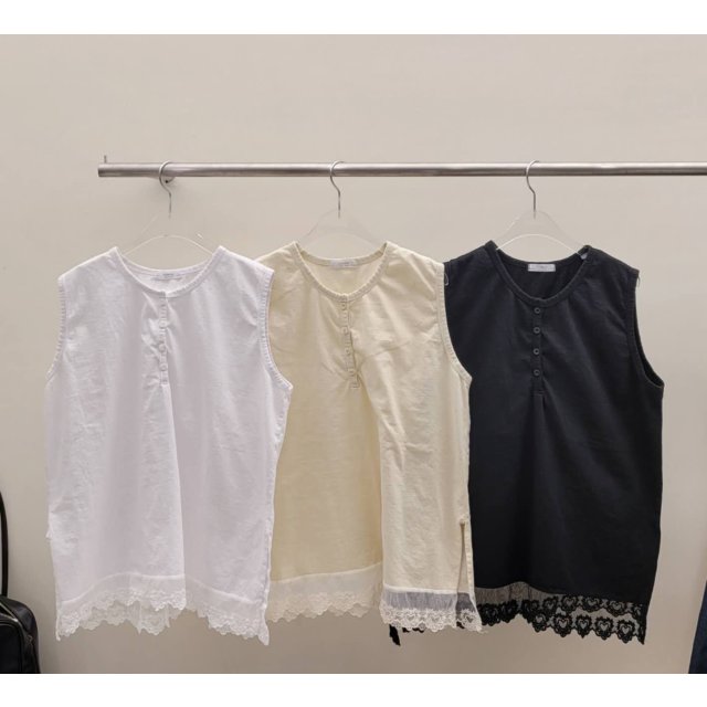 Powder 新款🍄扣紐Lace Vest P26 W44-46'L25.5
