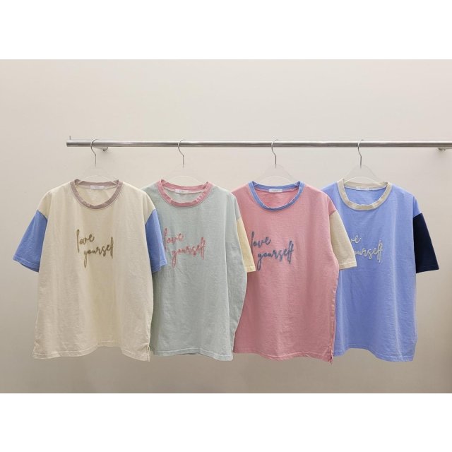 Powder 新款🍄刺繡英文字拼色Cotton Tee P1 W46”L25”