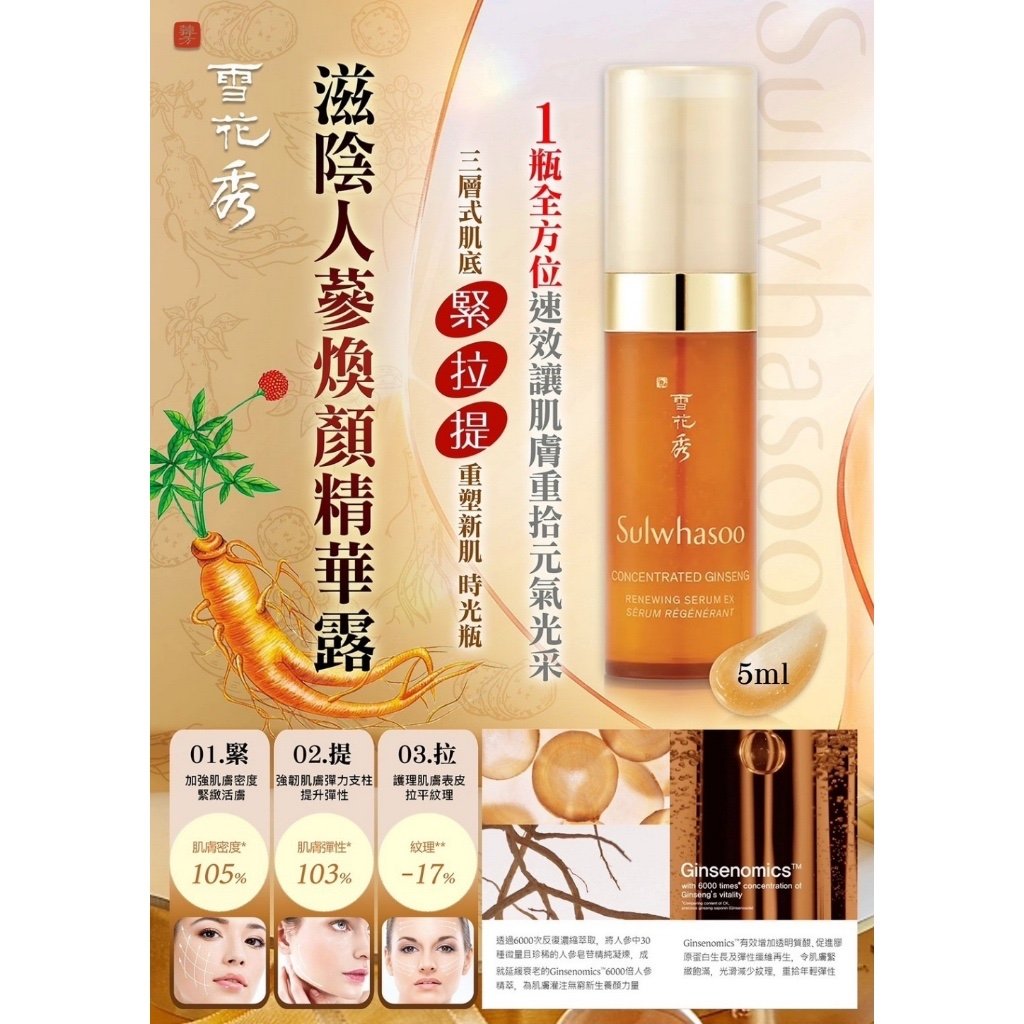 主頁 Sulwhasoo 雪花秀 -濃縮人蔘煥顏精華液 EX l(超平優惠)1套4支 ‼️‼️不計算免運費‼️‼️