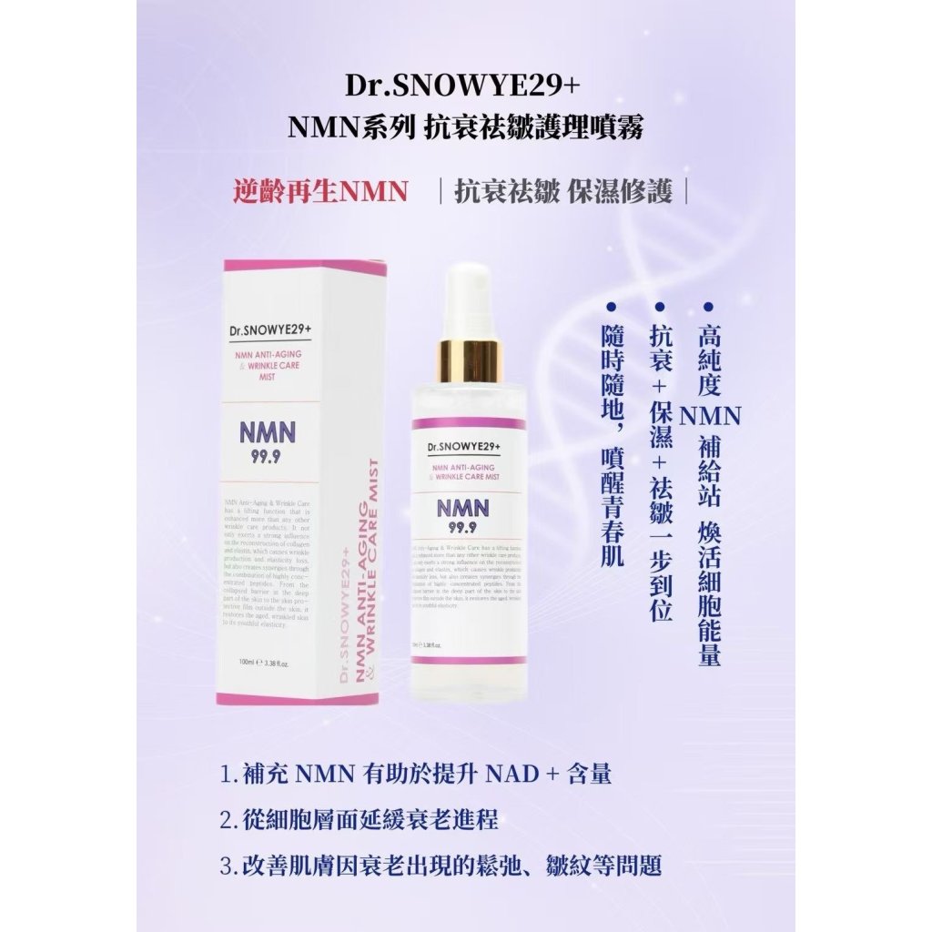 DR.SNOWYE29+NMN99.9 抗衰老去皺緊緻噴霧 100ml買1送1⏰🈵