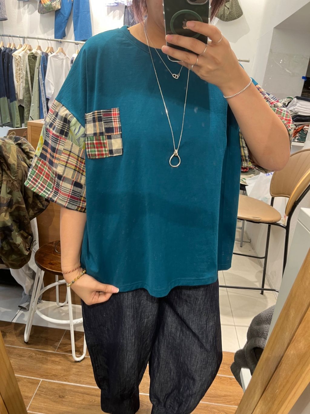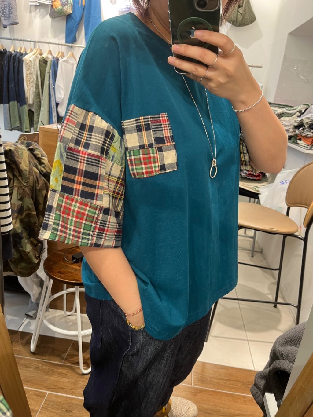 GU新款🩷併格仔布手䄂Cotton Tee G12 W50-52 L24"